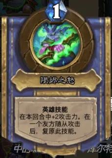 技能效果:英雄加2攻,友方随从攻击后复原。走a瞎来了,牧师直接哭晕在厕所了,当年就他一家走a,现在又多了2职业。这牌刚出的时候就有人想到了otk的方法了,用邪火神射手加演员大接力,实现26血的otk斩杀。yysy,强度是真不低,就光这个技能就已经很强了,如果配合减费,甚至斩杀线可以更加高,并且英雄牌的费用本身就不高,强度还是极具保证的。可进构筑送死瞎,节奏瞎,快攻瞎也可以带,只是可能没打出来就赢了。