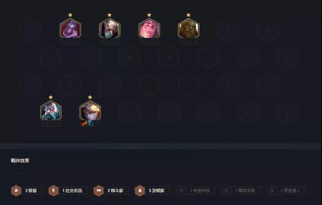 2阶段:2-1升级4人口2-5升级5人口,争取连胜。打工阵容最优就是极客发明家,EZ带永恩装备,这套阵容不建议连败,连胜才玩。装备上优先考虑羊刀。