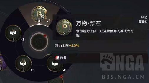 上面带三个闪避精力消耗减少和三个伤害怒气转换,给自己提供一定的灵活性的同时也让大招在战斗中来得更快一些,当然极端一点在上面带六个伤害怒气转化也是可以的。