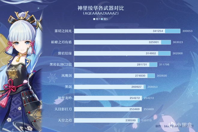 不看被动的充能,用神里绫华做输出模板可以得到这样的输出对比图: