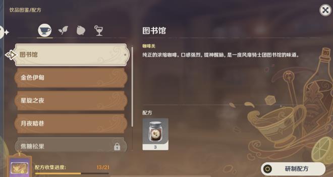 原神曲生酌微梦咖啡类饮品图书馆配方一览