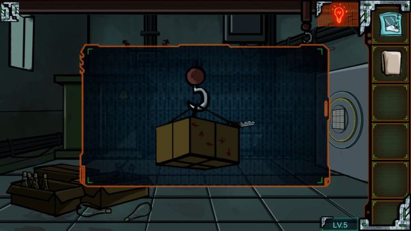 拾取箱子里的洗衣粉,还有操作台上的抹布,根据箱子上的提示,在操作台上按下“左上左下下”再按红色执行按钮,箱子移动,钥匙掉下来了