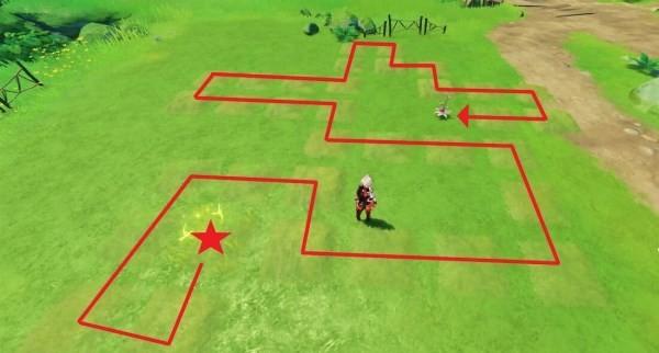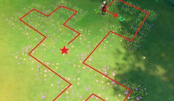 到達苗圃位置後,需要先通過解謎培育出桓斯彌利底後才能擷取。解謎思路類似於“一筆畫”,踩到最初發光的花後,會出現沒有開花的草叢,還有一到兩塊發光的草叢,踩到發光的草叢會啟用新的草叢,只有踩完所有發光的草叢才能看到完整的苗圃形狀,終點就是培育桓斯彌利底的花束,需要一次性不重複讓所有草叢都開花才算成功。在移動時要考慮好路線,一塊一塊走,途中如果走錯了路可以重來。