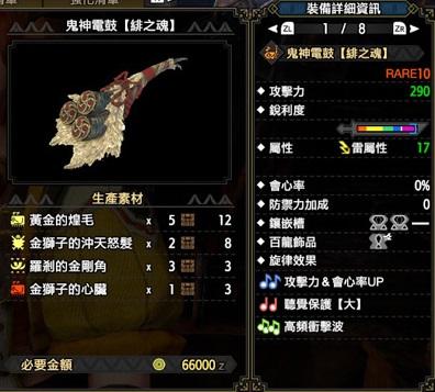 雷笛中唯一有攻擊&防禦UP的,但除此之外無亮點、斬位也是雷笛中最差。