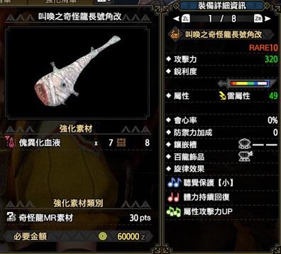 除了洞比較好外全面輸給雷神笛,有屬性攻擊力UP。
