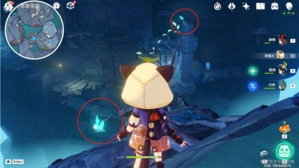 首先在这个位置,可以看到有两只仙灵,触碰仙灵,跟着仙灵飞,两只仙灵到达终点后,屏障消失,才能进去NPC「久利由卖」对话。