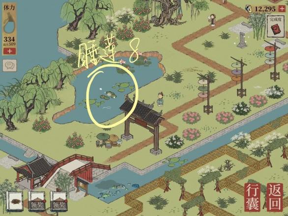 到这里就已经收集完所有的睡莲了,然后回去找家丁周叔