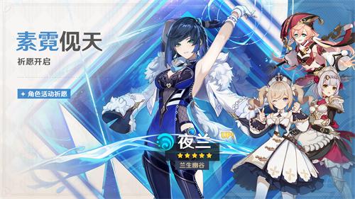 2.7版本更新后至2022年6月21日17:59,角色活动祈愿「素霓伣天」和角色活动祈愿-2「烟火之邀」开启,全新限定五星角色「兰生幽谷·夜兰(水)」和限定五星角色「护法夜叉·魈(风)」迎来概率UP。
