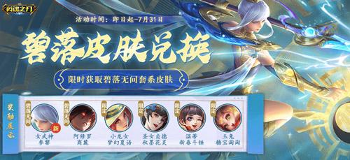 6月10日-7月31日,“碧落皮肤兑换奖池”更新,参与活动即有机会获得碧落无间全新皮肤女武神-参黎、阿修罗-商麓、小龙女-梦幻夏语、圣女贞德-秋墨花灵、温蒂-新春斗锤等好礼!