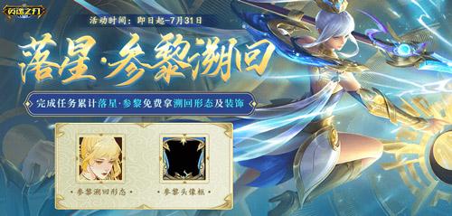 另外,在6月10日-7月31日期间,参与“落星·参黎溯回”活动,完成每日登录、对战、每日世界频道发送【碧落无间·参黎】关键词的助威等任务,即可获得“落星·参黎”。当“落星·参黎”累计到一定值,可获得碧落无间皮肤幸运券、参黎头像框、女武神-参黎溯回形态!