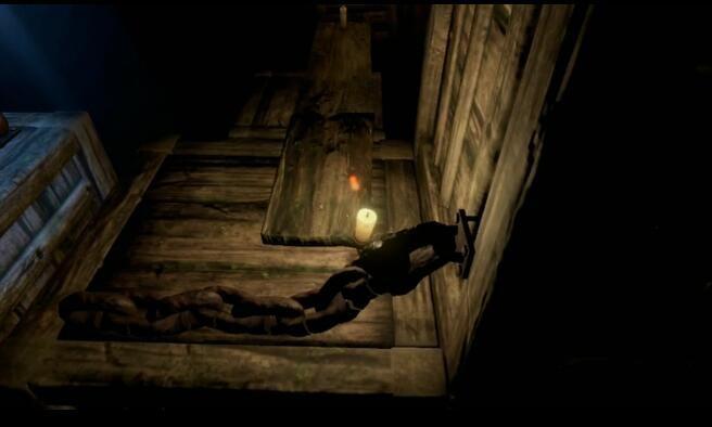 跳到右边的木板上后,右下角会有一块隐藏的木板,跳上去,这里有一支蜡烛可以点燃。