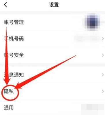 2、然后进到设置页面,点击如下图所示的个人隐私选择项。
