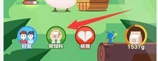 2、进入以后,我们看到界面最下面有一个领饲料的,这个就可以打开了,答题是在这个里面的。