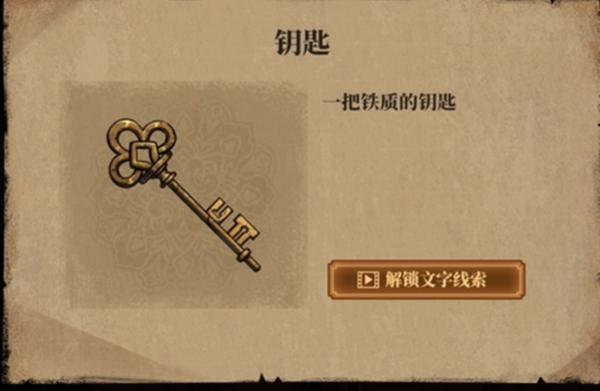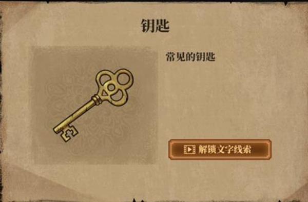 16、回到对岸在道具栏查看手绘图,根据图上标记X的地点用【洛阳铲】挖出【钥匙】。