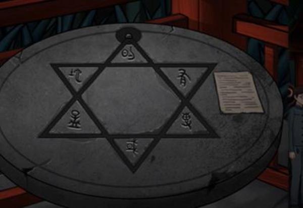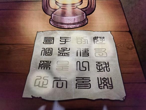 3.查看墙上的符咒,将图案调整和后面阴影一致,只有“封”字能移动。