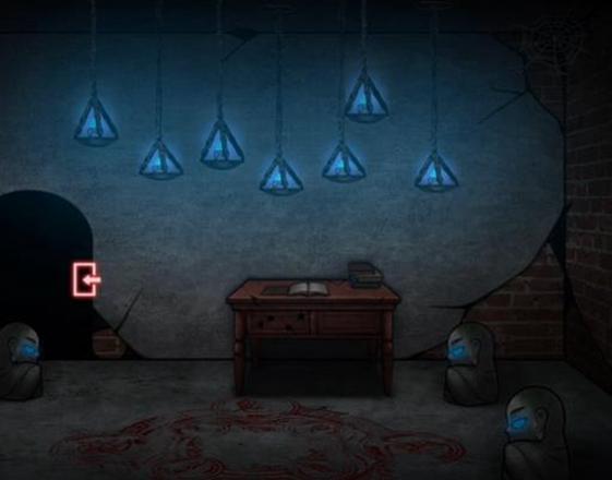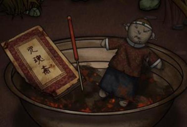 27、查看最右边的亭子把三枚【古币】放在三个凹槽内,把【艾草小人】放到左边白蛇嘴里,把【阴森的佛像】放到右边黑蛇嘴里,点击黑暗处进入下一章。