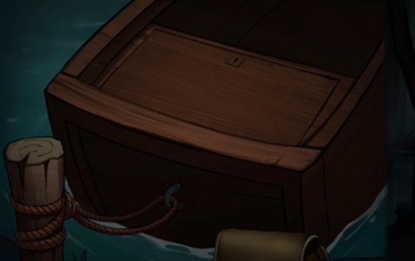 13、用【钥匙】打开船舱拿走【船桨】,把【船桨】放到船上,点击绳子释放船只到达对岸。