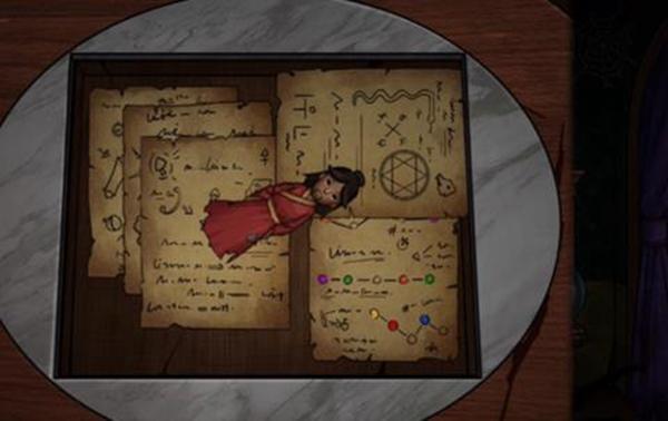 31.向右走,查看桌子上棋盘,完成小游戏,拾取【木偶小人】查看里面的线索纸。