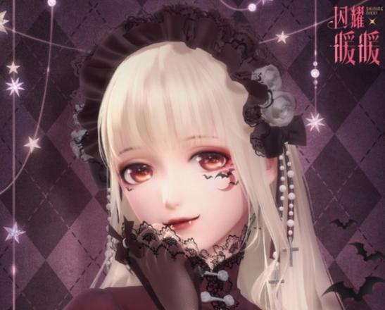 先说整体的氛围塑造,一定要选择阴间滤镜,这个太重要了,同时背景选择诡异气氛十足的,一定是黑暗背景,配色和贴纸怎么阴间怎么来。暖暖的妆容这一块一定要黑眼圈,冷白皮,赤瞳+大红嘴唇都安排上,一顿吃仨孩子的那种。