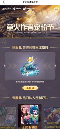 下载快手app,搜索“萤火作者宠粉节”,进入活动后可见获取条件,然后关注下方推荐的作者三名。