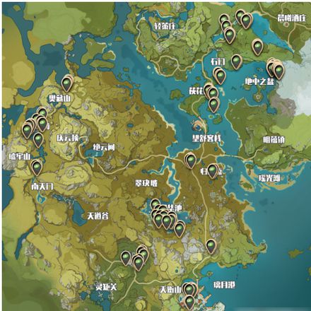 莲蓬分布图:璃月港地图中青色标记的均为莲蓬。