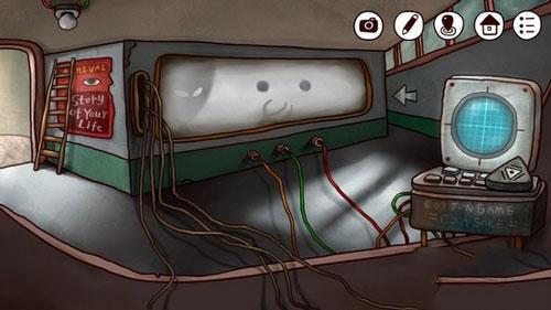 来到客厅,和老人对话,得到信息【1.邮筒里有船票;2.邮筒需要钥匙;3.工厂的门有机关;4.楼上有时间机器;5.开启时间的密码在笔记本上;6.楼上需要用铅笔涂涂写写。】