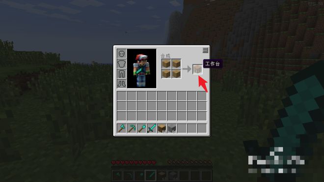 3、简易制作栏每个空槽放置1个木板,得到工作台。