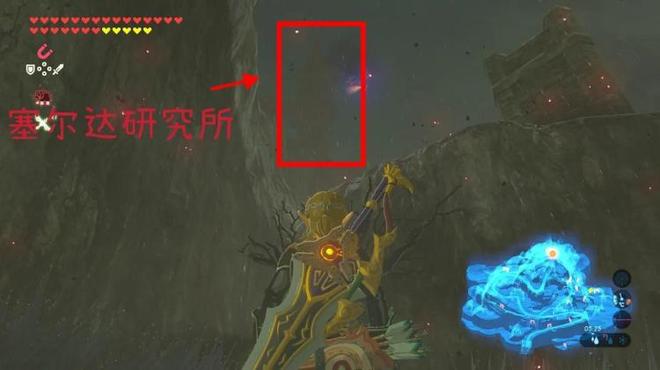 传送船坞的神庙,从船坞出来往左,可以看到一个高耸的城堡塔——塞尔达研究所