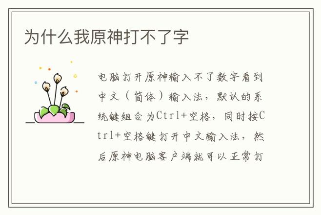 原神电脑端为什么输不了数字:现在原神呼出聊天界面后焦点不在输入框,需要再点一下输入框或者按一下enter(回车)键,焦点才在输入框里。当闪烁的光标出现,你就可以打你想打的数字和文字了。知识扩展:《原神》是由上海米。