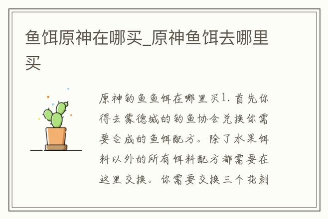鱼饵原神在哪买_原神鱼饵去哪里买