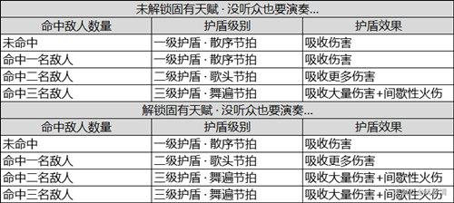 直截了当地对周围敌人造成火元素伤害,并基于命中敌人的数量生成不同级别的护盾。护盾的伤害吸收数值受到辛焱的防御力加成(要有人跟诺艾尔抢圣遗物啦~)。解锁20级突破的固有天赋「没听众也要演奏…」后将减少护盾等级判定需要的命中敌人数量一位。