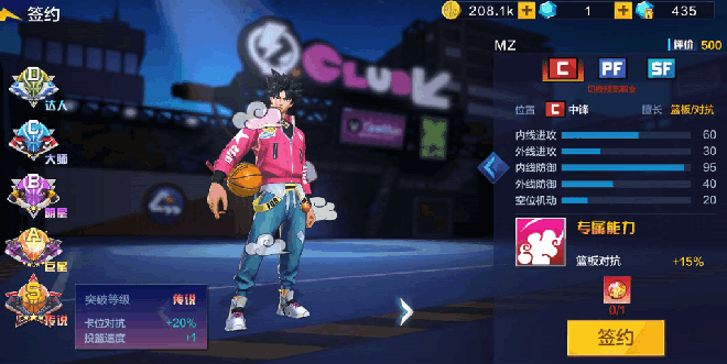 中锋的卡牌,目前游戏版本不会有很大的争议,基本上以S级“王牌出场”卡牌为核心。篮下投球、篮板、对抗,3种属性完美契合中锋的成长路线。卡牌强化以“篮板”为核心,接下来注意“对抗”,后面再升級“篮下投球”。除此之外,篮板和对抗等属性,可仰仗俱乐部—技能,来做升級强化。