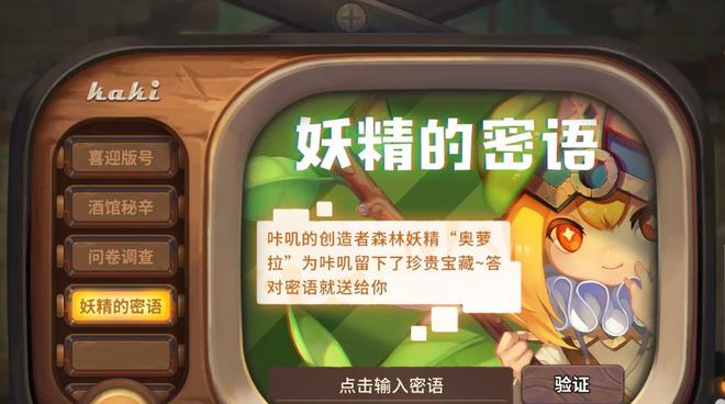 礼包码可以通过游戏初始界面右上角“妖精的密语”图标进入界面,打开最后一栏“妖精的密语”,即可在本界面输入礼包码并且领取兑换。