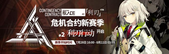 危机合约第二赛季「利刃行动」将于7月28日16:00至08月11日 03:59期间正式开启,在赛季期间玩家通过通关赛季关卡来获取「合约赏金」以及「行动协议」,用于兑换圣所中的内容以及解锁更多的危机合约内容。之前曝光的包括小车反隐干员稀音也将在更新后同步登陆游戏,流沙涡旋限时寻访开启,全新的珊瑚海岸系列新干员时装也会在本赛季内上架限时出售,让我们一起期待吧。