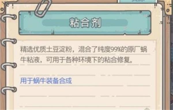 通过粘合剂,玩家可以将之用来蜗牛装备合成,带来属性和实力上的快速增长。