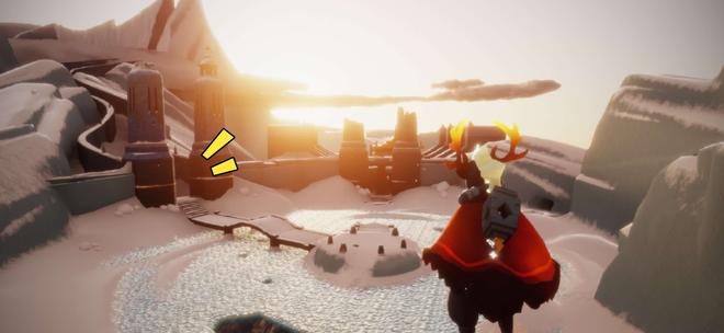 玩家从遇境进入霞谷溜冰场,往右边的平台飞,即可看到第一个叉腰先祖。