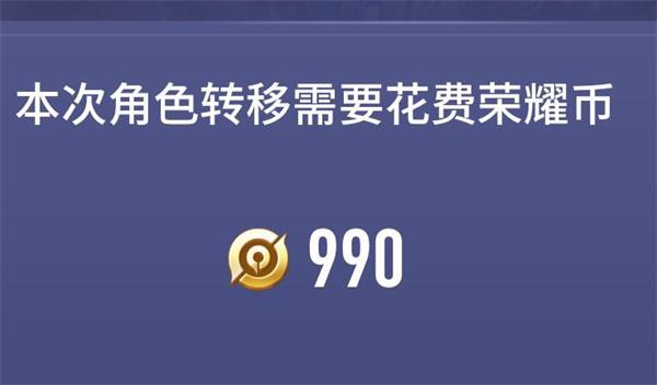 角色转移可通过王者营地-战绩-更多工具-角色工具完成,需要花费990荣耀币,也就是99人民币。