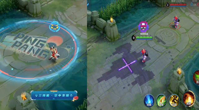 3技能和特效,看起来电玩男孩没有乒乓少年那么显眼,乒乓少年3技能和特效中间的图案会变成上次和鲁班大师的合影,真的比电玩男孩好看。但是,电玩小子依然有着独立的回城特效,是乒乓球少年无法比拟的。