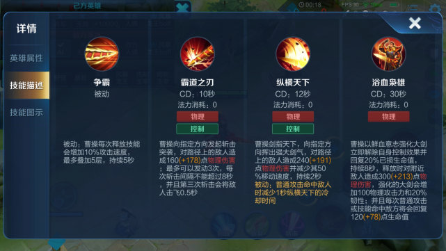 曹操的被动技能非常强大,也就是曹操释放技能后可以增加他的攻击速度。一个技能可以让曹操朝指定方向移动,而曹操可以连续释放三次,最后一次可以造成飞行效果。