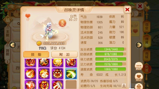 进攻资质1344,防守资质978。这两个距离极限差距不大,体力资质3543,超过满值。此外,增长值为1.213。目前这个鲨鱼将军的面板物理伤害已经达到了1305。虽然这个数据在精英团的进攻中还是相当可观的,但是和10亿的价值相比绝对不够。看来这个召唤灵一定有技能。