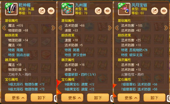头盔是70级简特干坤帽,绝技是破弱点。在实战中面对一些防守极强的对手时,可以大幅度提升伤害收益;项链虽然是60级装备,但忽略物理防御效果和碾压无与伦比的绝技组合,不仅提升了输出能力,还降低了对手的蓝量对其进行压制;鞋子也是简特的一件装备。罗汉金钟的绝技,无论是PVP还是PVE,都可以提高球队的伤病承受能力,这是非常实用的。