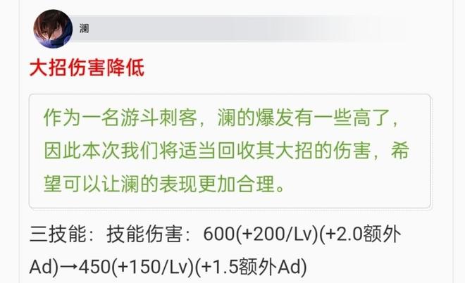 和一样悲惨的英雄是兰。兰从上线就被裁掉了,从来没有彻底加强过。在这次削弱中,兰的大伤被直接削了。兰的核心机制虽然是二技能印记的快A级,但是大招也是非常重要的一个环节,估计伤停之后就要告别比赛了。