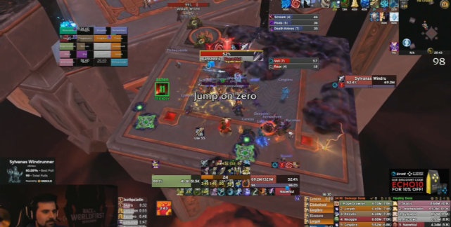 希女王并没有让玩家失望,52%的进度成为了首杀队难以跨越的门槛。这2%的健康值一度成为关注的焦点。因为有了H 希尔瓦娜斯的击败机制,当战斗结束生命值降到50%的时候,echo率先突破51%。如果采用英雄难度机制,胜利指日可待。Echo把这1%视为世界第一步,所以她把希女王的生命值压到了49.57%。但希女王并没有倒下,而是继续战斗,验证了史诗难度的击败机制不同于英雄难度。