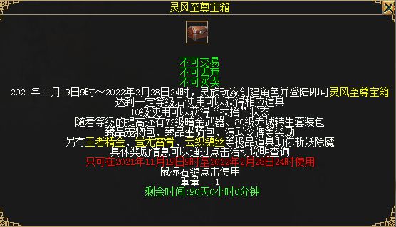 新职业角色上线即可领取灵风至尊礼包(绑定)(90天)