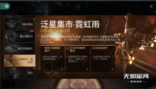 活动期间,新伊甸的所有保险生成的市场订单数量将增加,艾玛市场的税率也将降低!11月6日-11月7日,11月13日-11月14日期间,新伊甸所有异常掉落产出将得到提升,其中,击杀海盗掉落装备概率提升50%,掉落结构的概率提升25%!