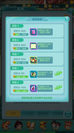 每累计一定量的成就点,就可以解锁一项奖励。比如累计500成就点时获得的是低级兽决,1000点时则是10个仙君碎片。越往后的奖励就越好,甚至拥有精美的头像框、队标、聊天气泡等外观,以及最极品的高级兽诀之一的高级法连!在成就系统中获得的奖励会通过邮箱发放。