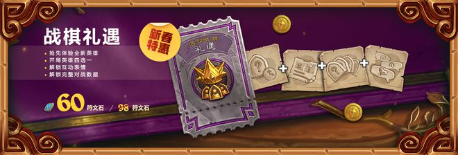 新春版本战棋可谓迎来了史上最大更新:开启战棋新赛季积分清零的同时,加入了颠覆性的伙伴玩法,75个英雄解锁了各自的专属随从。同时,更有四个新英雄加入战局,而战棋礼遇依然能够抢先体验。在本次打折季当中,战棋礼遇也迎来了节日特惠:原价98元折后60元,现在正是入手的最好时机。