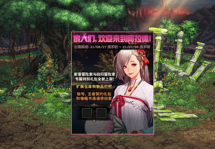 【3】礼遇特权出现。新晋冒险家和归来的冒险家有特别的礼包,在商城,上架,也就是说,氪金是你唯一能买到的地方。