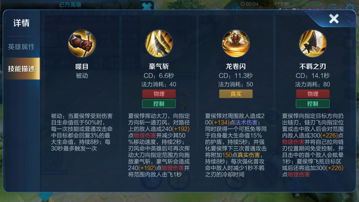 夏侯的实力在于前两项技能附加了一般攻击的真实伤害,这意味着夏侯在面对众多勇士和英雄时拥有一战的力量。同时,夏侯被动CD并不太长,只有30秒,这意味着夏侯在很多情况下可以故意触发被动回血效果,从而在网上对敌时获得更大的优势。