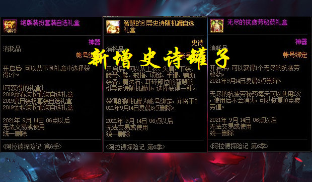 【41-50级】:材质礼盒、护石礼盒、导石、雷米福、史诗罐、药引调节盒、魔法秘方、10加券、黄金增书、无尽抗疲劳秘方、专属光环